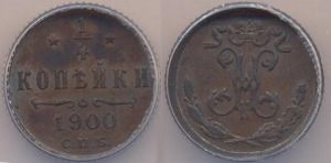 Четверть копейки с вензелевым изображением имени императора Николая II